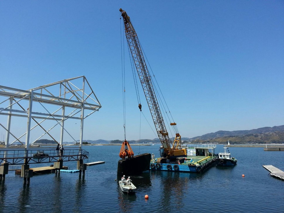 昨年の台風で被害にあった桟橋。処理に悩まされていましたが、ほんの2時間で!持つべきは師匠!そして友人として!処理に携わって頂いた方々に感謝です(^^)/