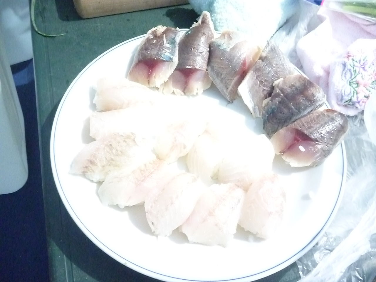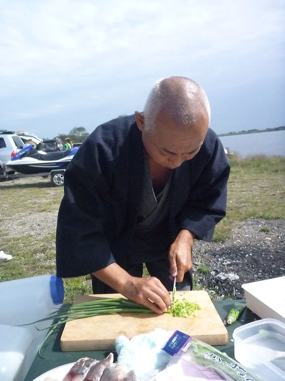 昨日釣れた魚を、みんなに振舞ってくれる篠原さん![]()