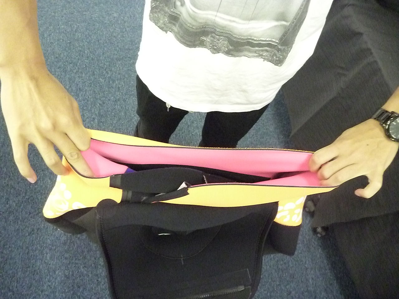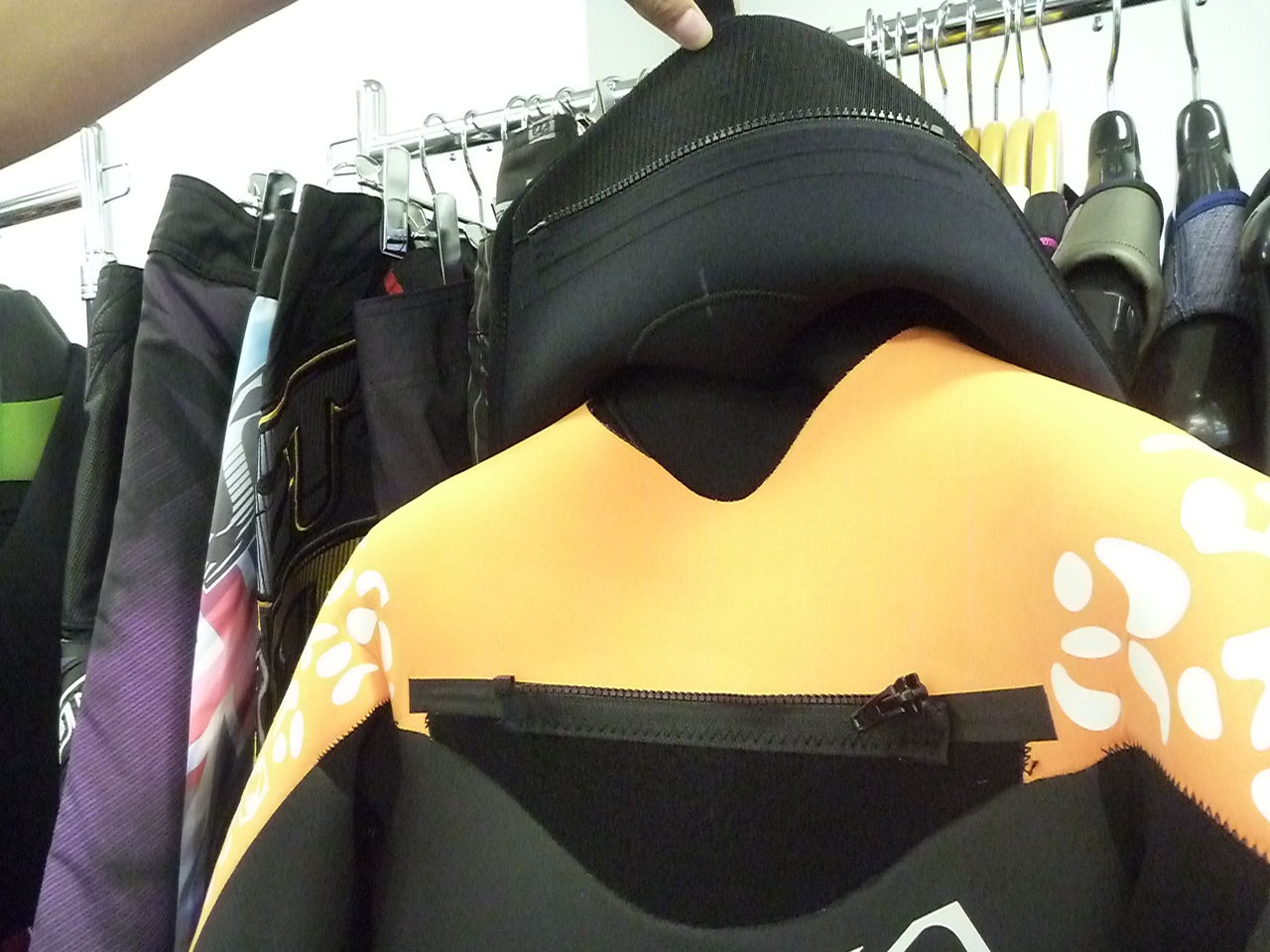 ネオプレーン。背中にファスナーとベルクロ付き。