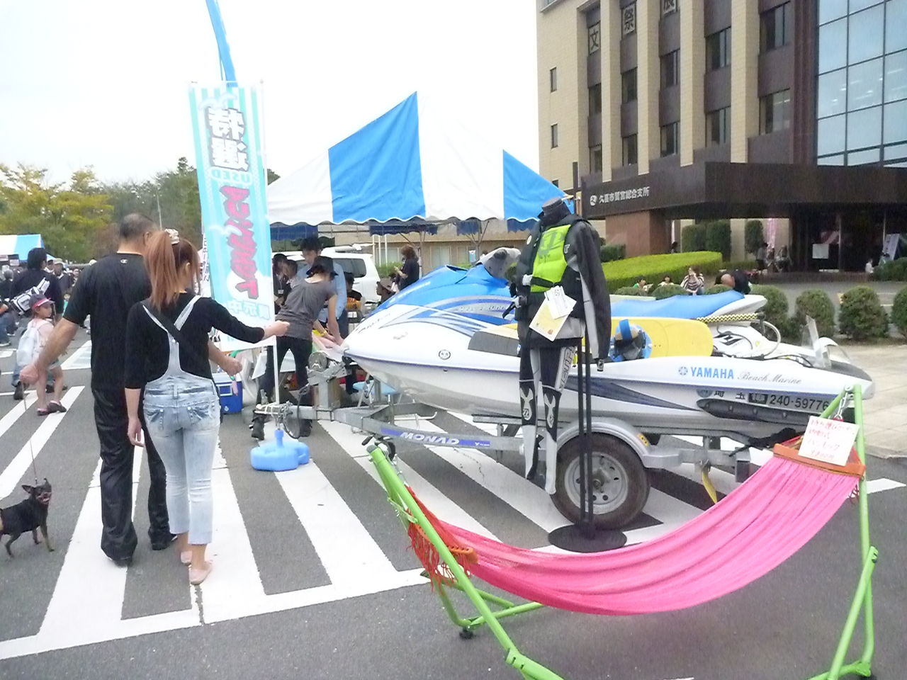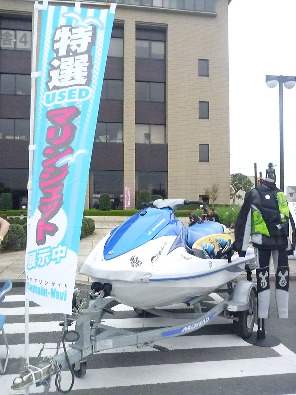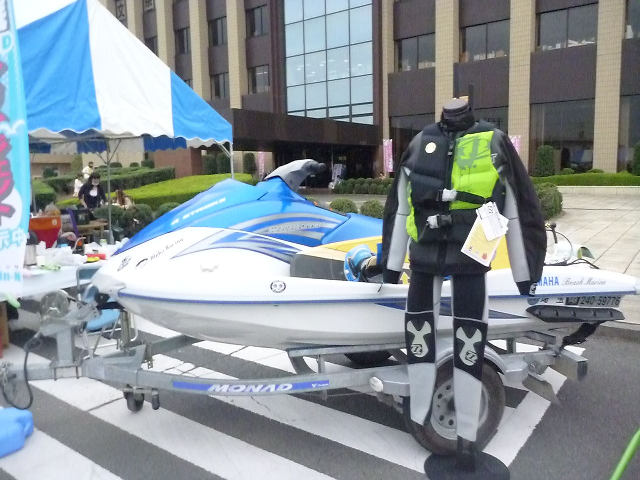 マリンジェットを展示したり、免許申し込みの受付をしたりしています。