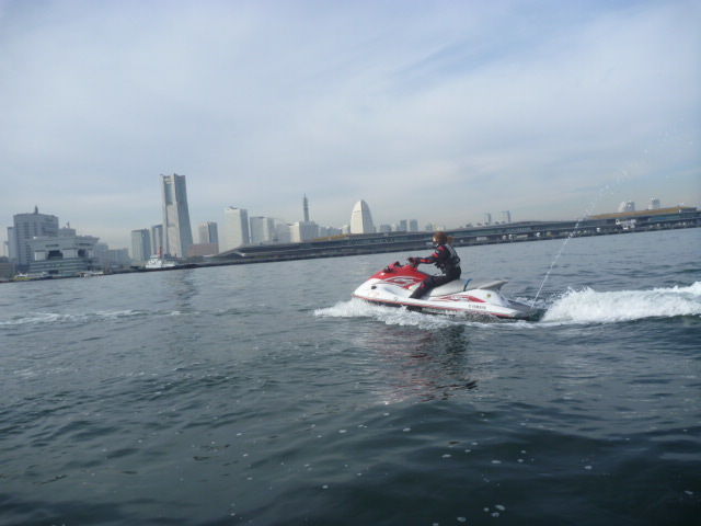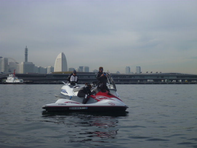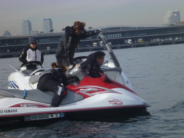 ◆ハンドルカバー。(今回は、3艇のジェットに装備されていました。素手でハンドルを握っていても、汗をかく程暖かいようです。しかし、装着の仕方によっては非常に危険ですので、十分注意して装着すること。ハンドルカバーの一部がアクセルに引っかかり、急発進することがあります。ビーチマリンで装着できます。)