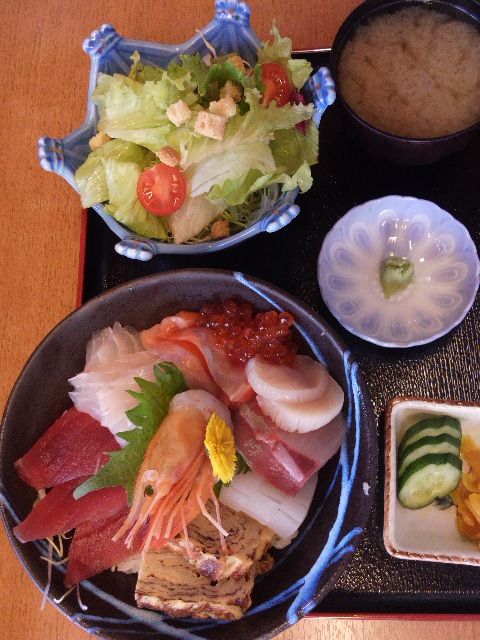 やっぱりこれでしょ~。9種のネタが入った 海鮮丼d(^-^)これで1380円の安さ!!