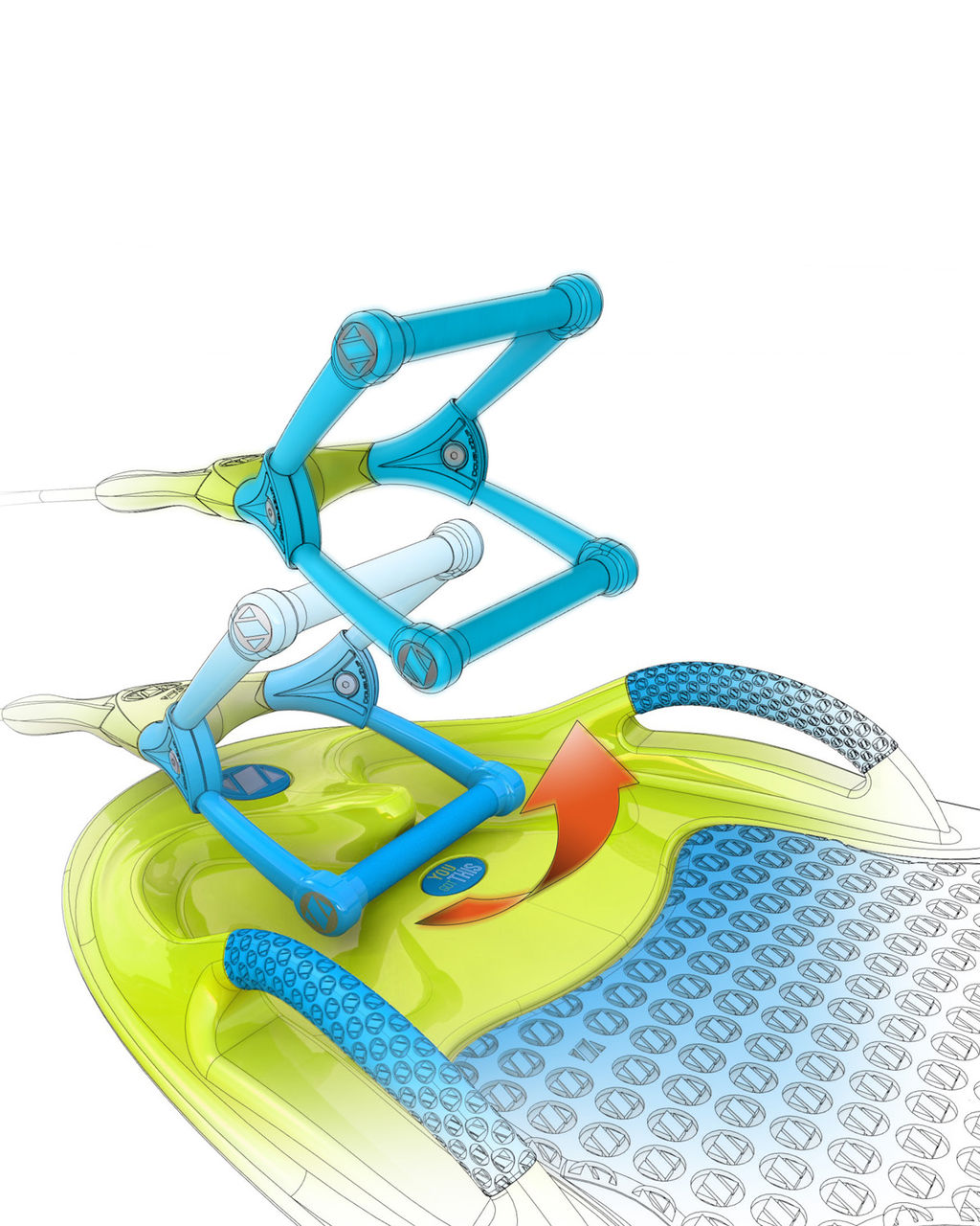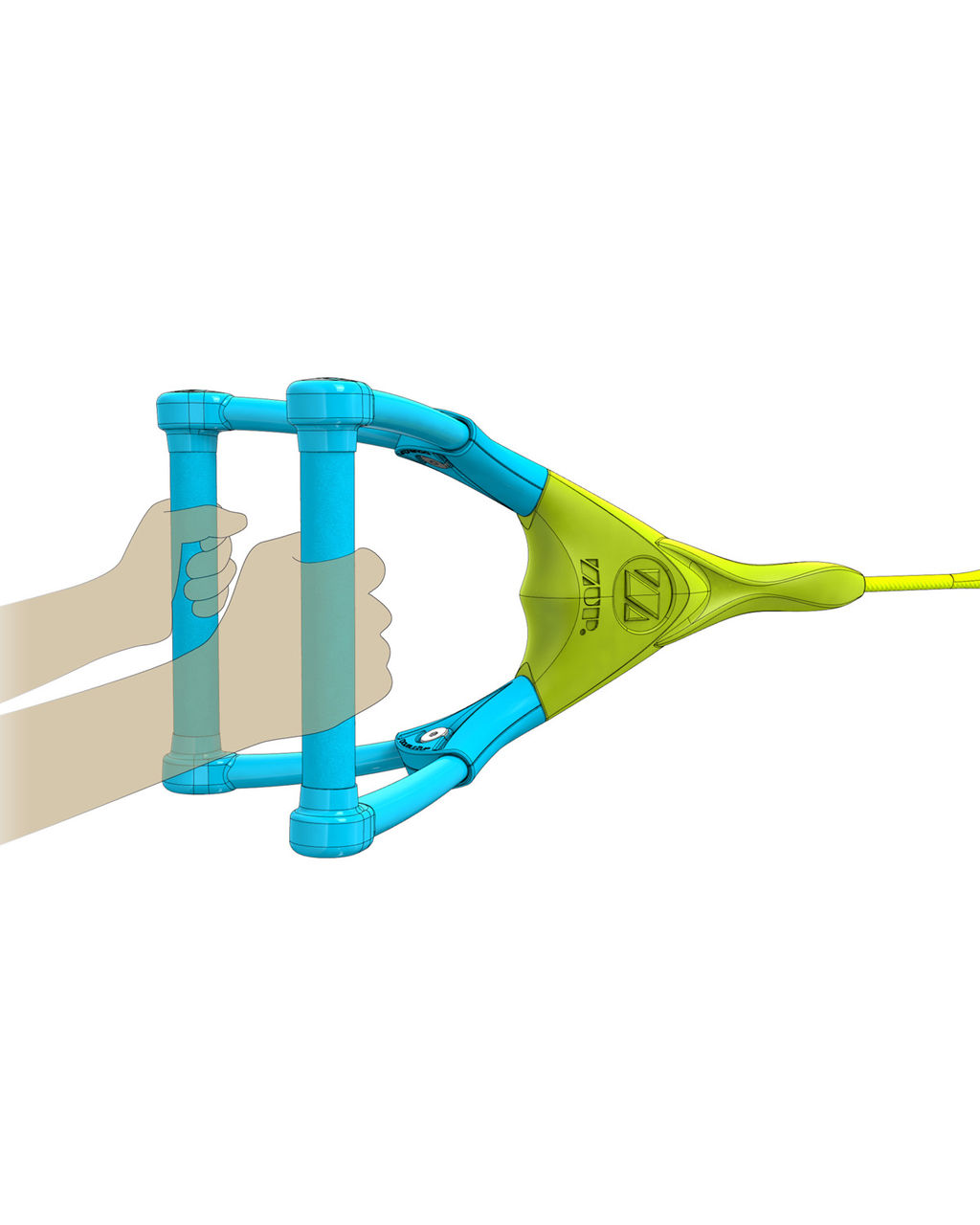 トーロープハンドルのライムイエローカラーのフロートは、水上での視認が高くなっています。