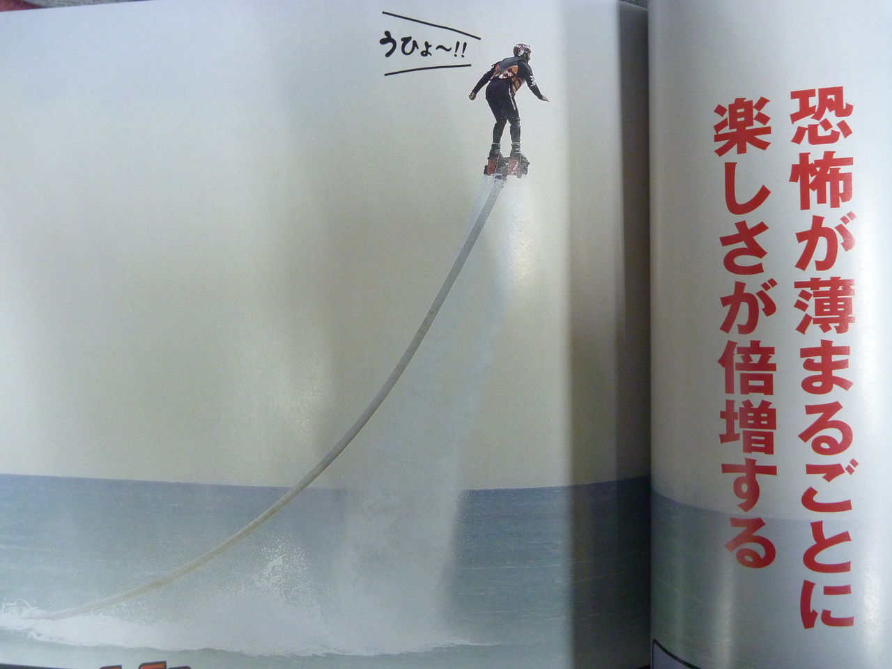 ▼ワールドジェット 編集部A君がフライボードに挑戦!