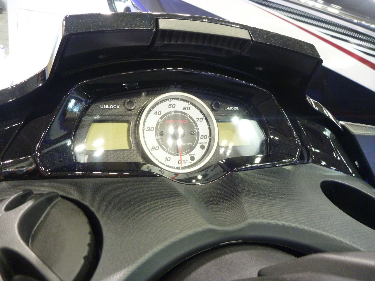右側・・・マルチファンクションディスプレイ 気温、水温、コンパス、航走距離、燃費などの情報を表示。(このマルチファンクションディスプレイは、FX CRUISER SVHOにのみ搭載されます。)