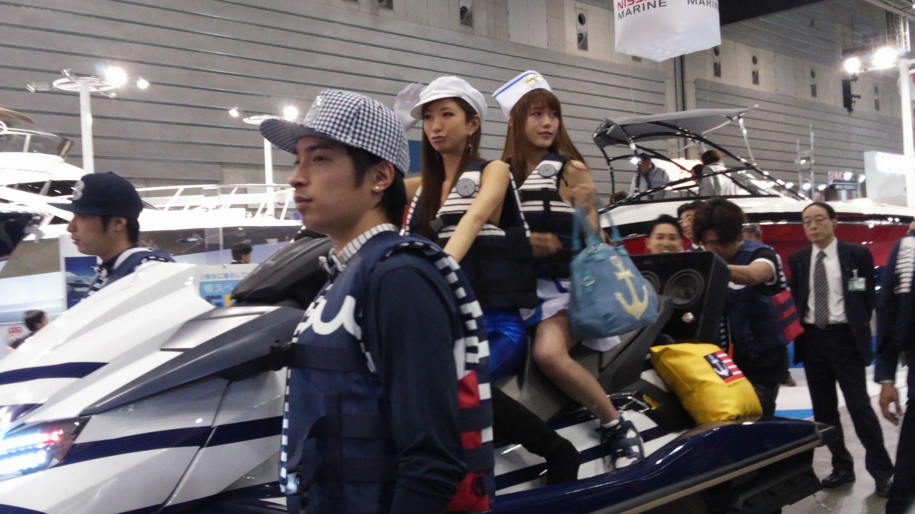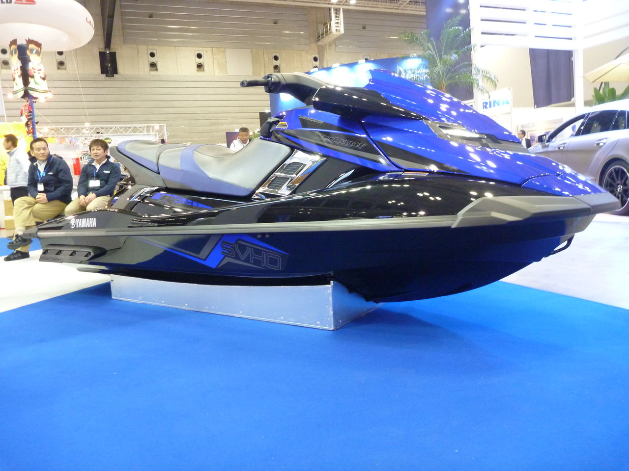 私は、ボートショーではマリンジェットコーナーに毎年おりますが、今まで女性は男性よりジェットに興味を持って会話をすることが少なかったのですが、この機種のこのカラーリングに関しては、むしろ男性よりも女性の方が興味を抱き興奮していたようです![]()