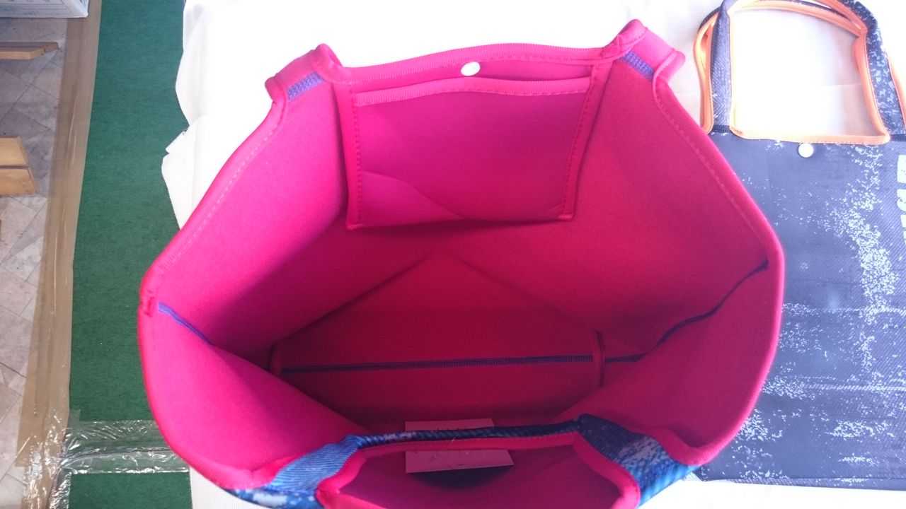 上記のラウンドトートは、細かい小物の収納に最適でしたが、こちらのトートバッグはたっぷりとマチがある分、見た目よりも収納力に優れていてザックリと大物収納に適しています![]()