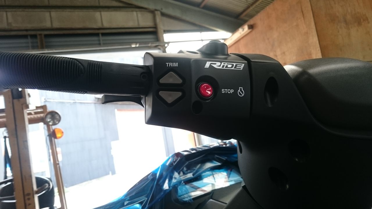 ▲左ハンドルには、新機能 【RiDE ライド】レバーと【エレクトリックトリム】が装備されています。