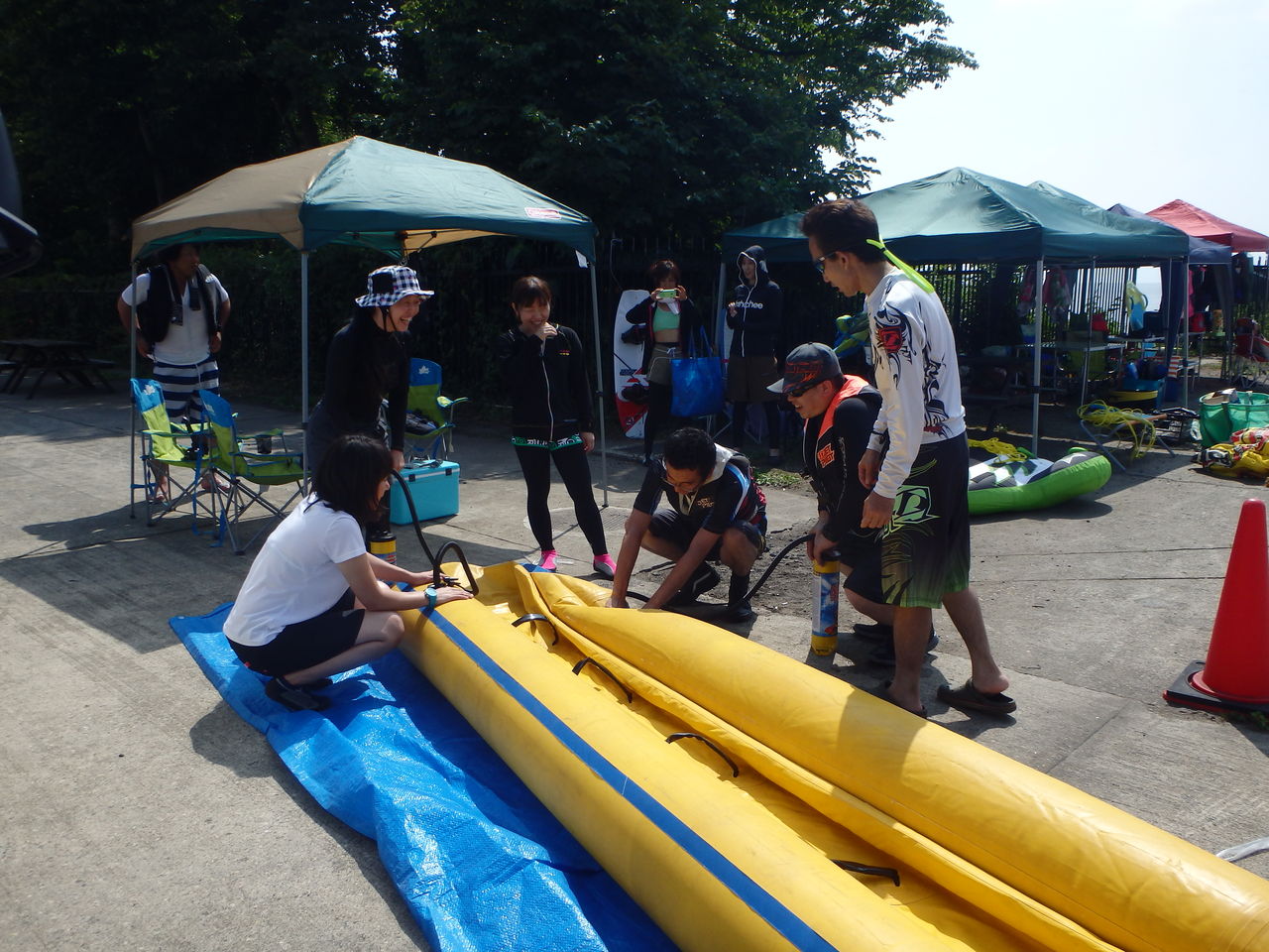 バナナボートなどは、参加者みんなで協力して膨らまします![]()