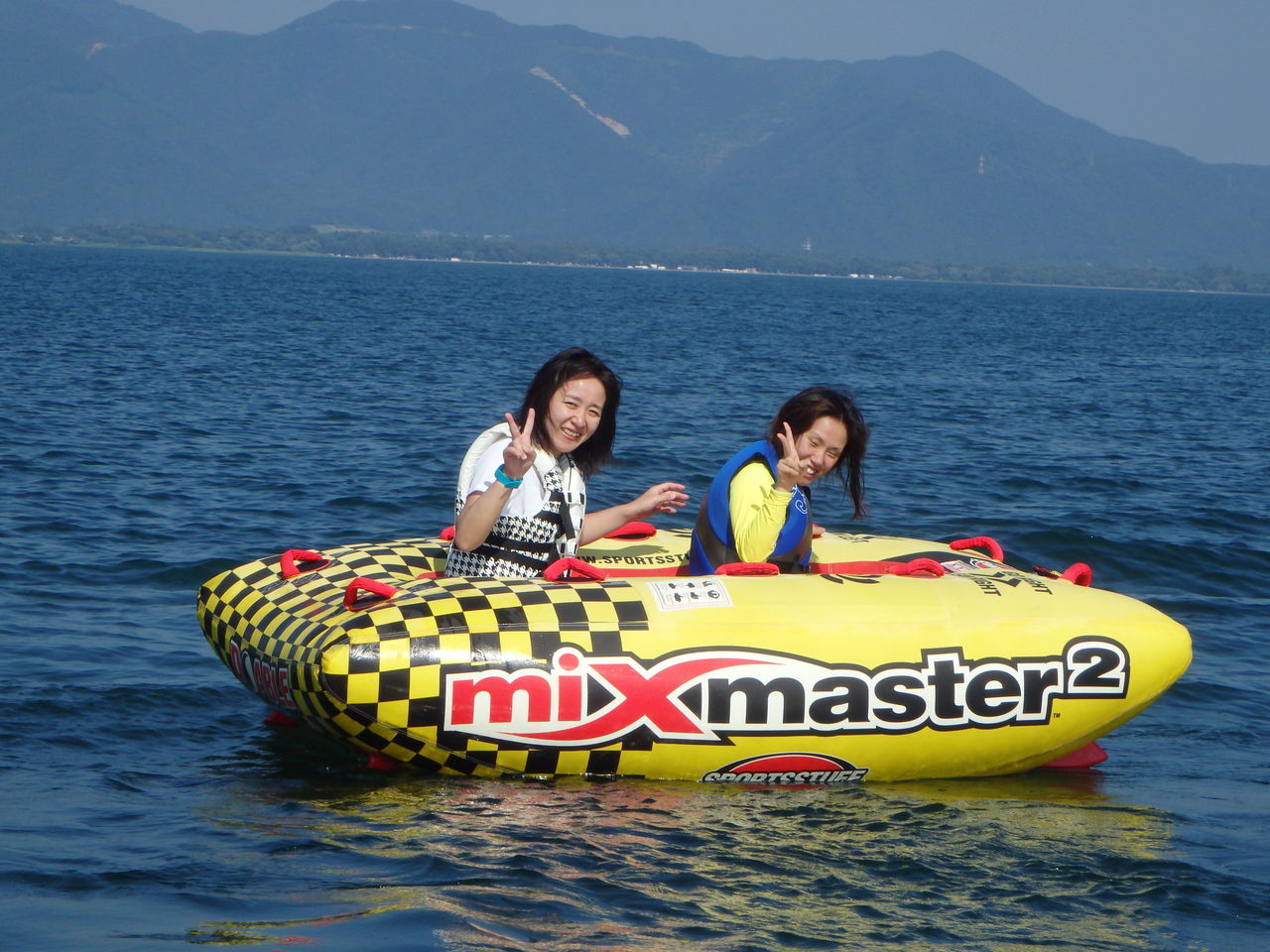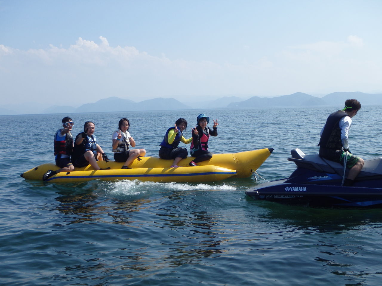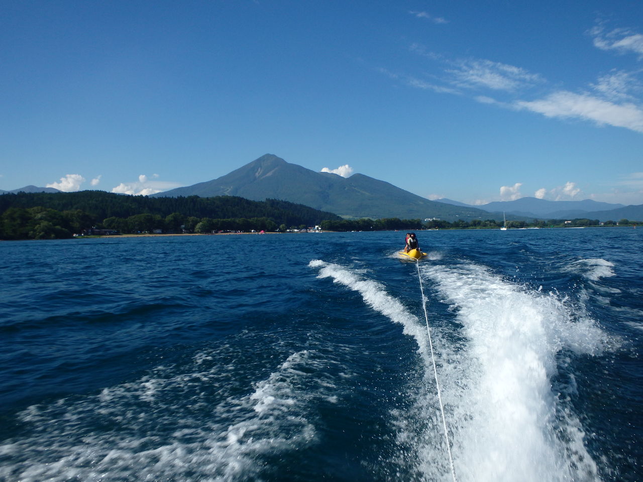 磐梯山を望む大自然が素晴らしい猪苗代湖で、マリンジェットやバナナボートで遊びます![]()