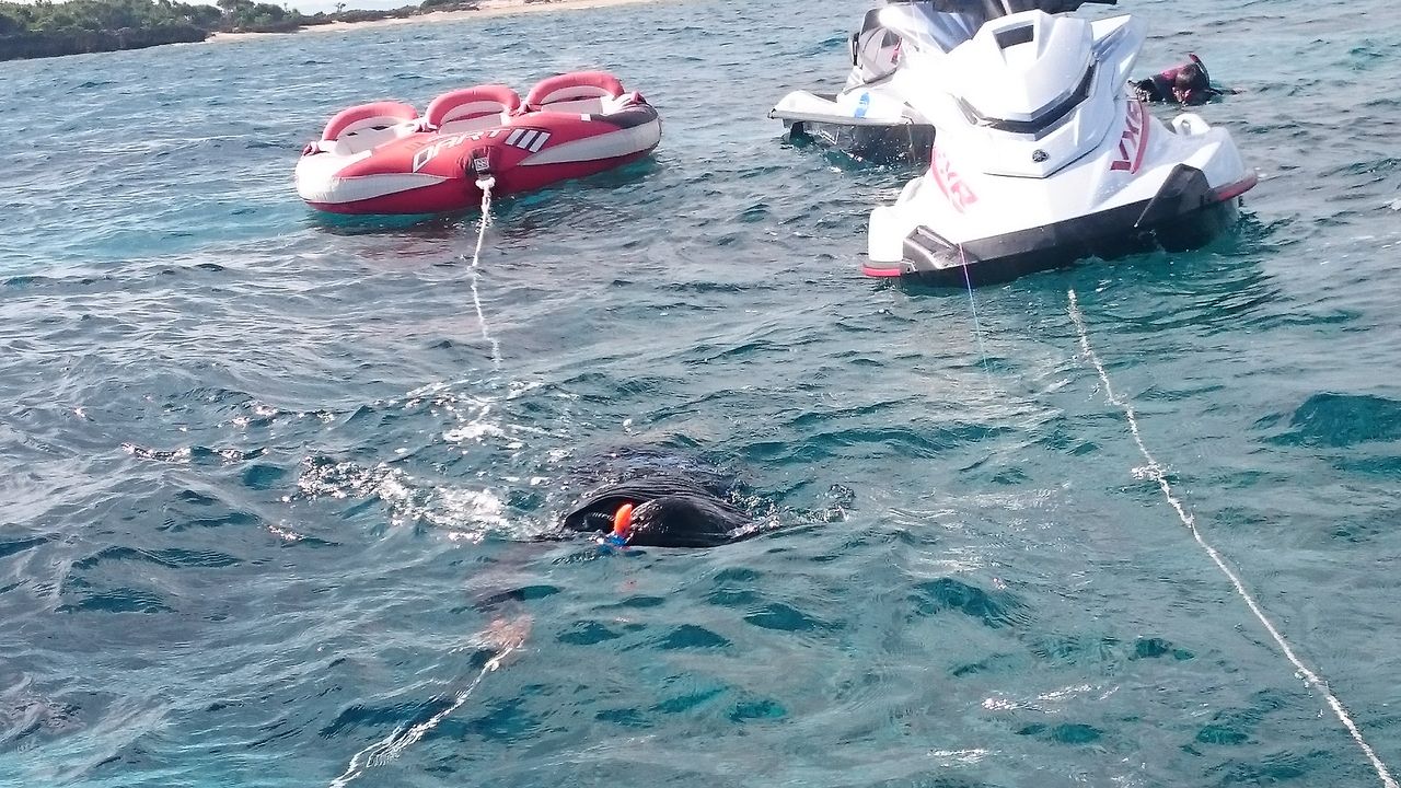 海底にいるウミガメは、一定時間過ぎると空気を吸いに水面まで上がってきます。