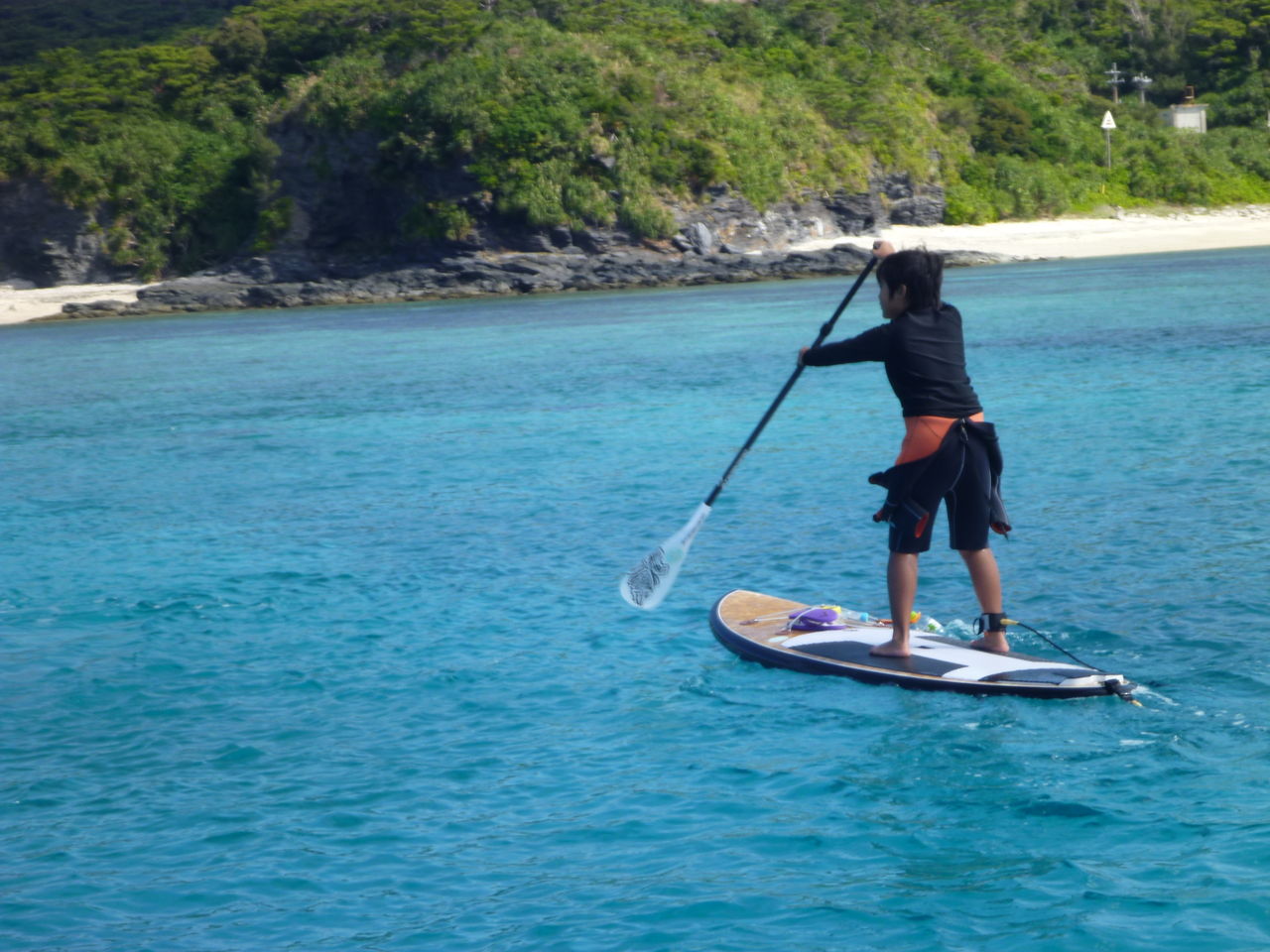 オフの日に親と子がサップボードしている姿、ステキです!カッコイイです!