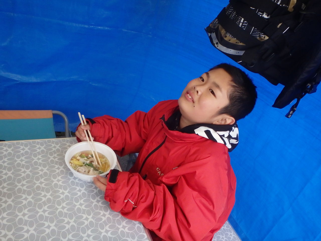お昼は、熱々のちゃんこ鍋をみんなで作ってワイワイ![]()