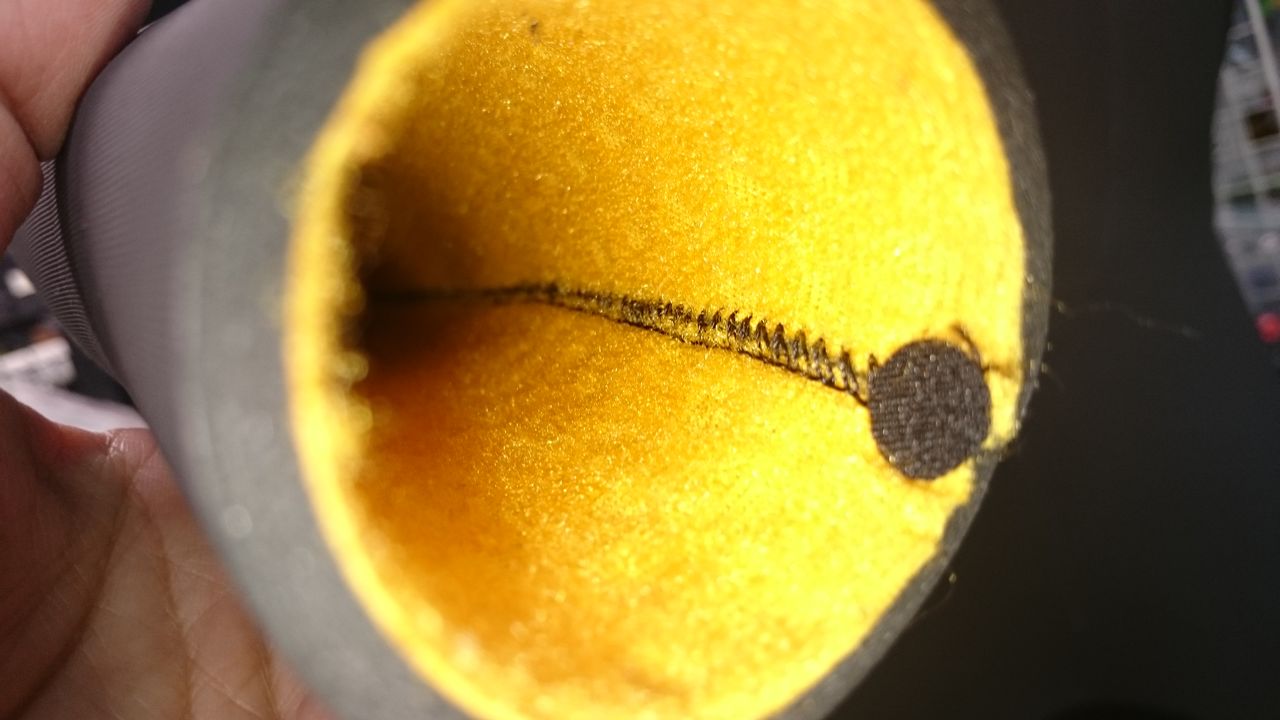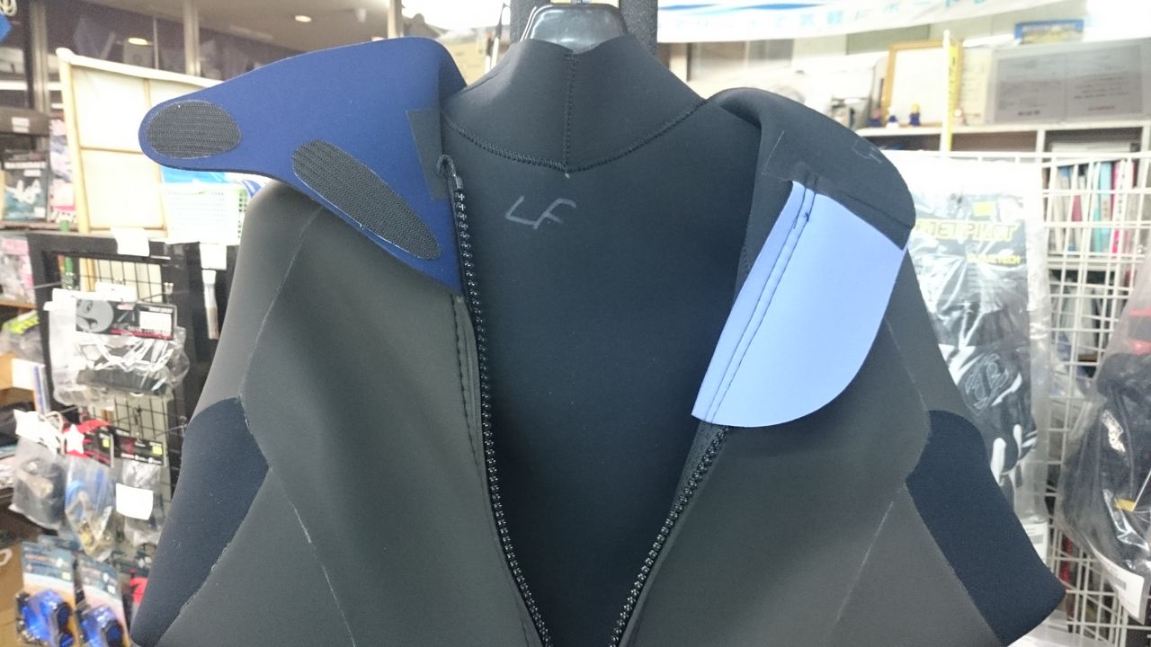 首周りからの水の浸入やファスナーからの水の浸入にたいして、素肌に直接当たらないようにもう一枚ウエットが装備されています。