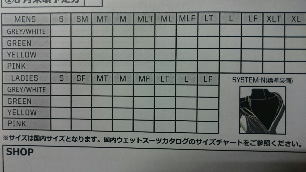 ご自分がどのサイズかご不明な場合は、ビーチマリンまでご相談くださいませ。