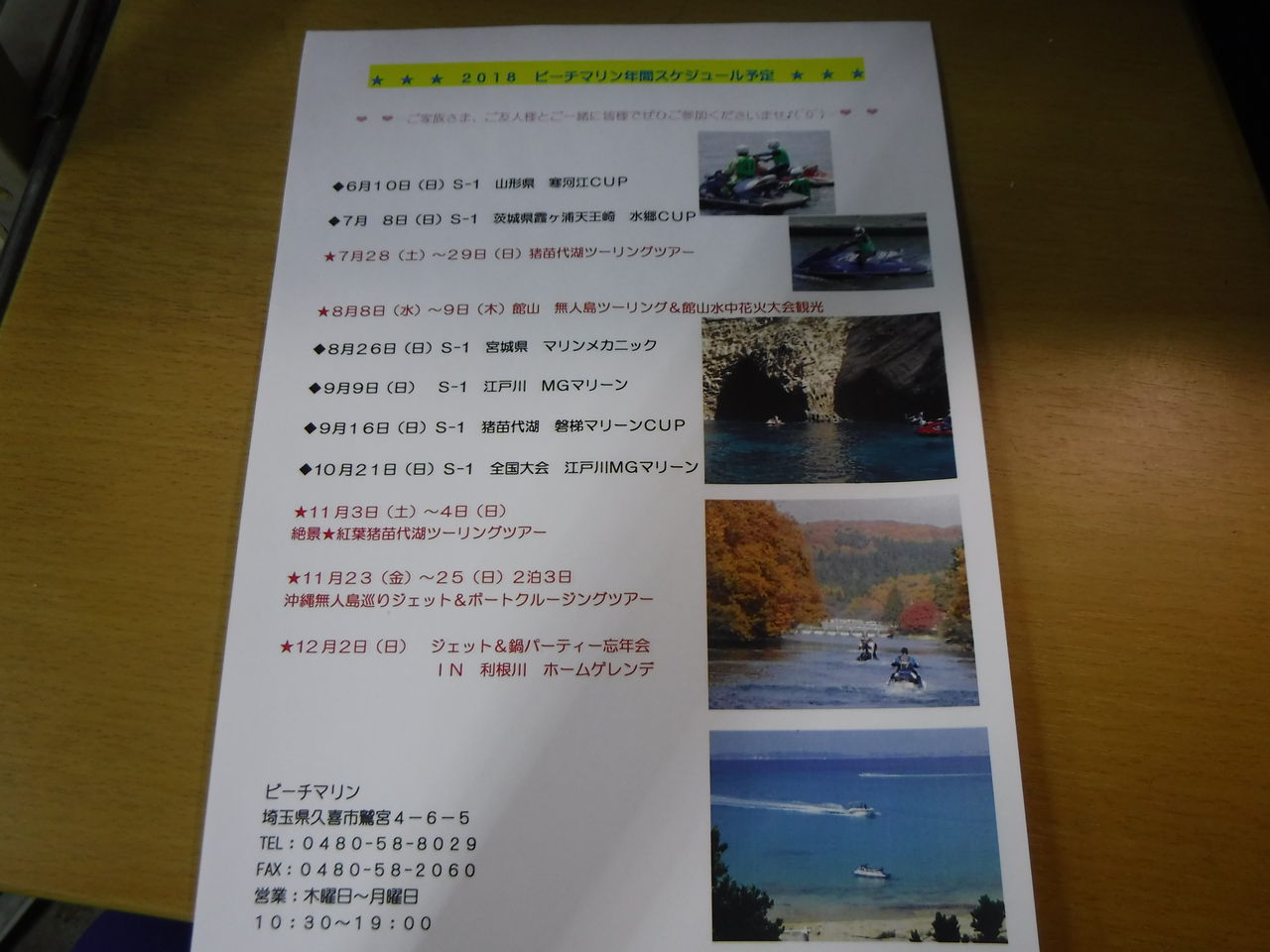 2018年ビーチマリンイベントスケジュール(予定)です!