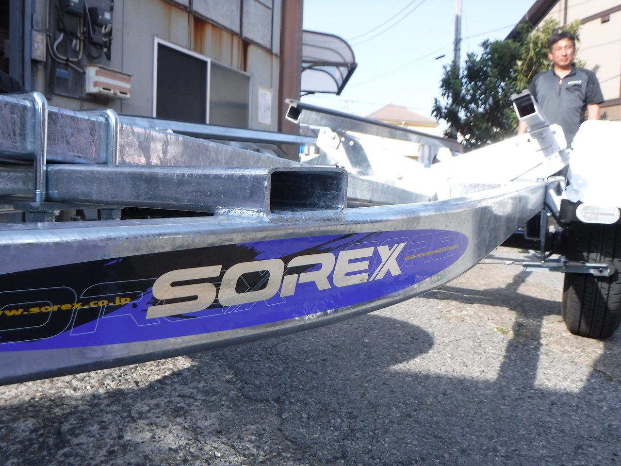 このトレーラーが艇庫内にありますので、ご興味のある方はぜひご来店して現物を見に来てくださいね♪