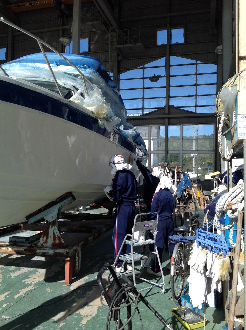 トライやるウィーク 2014年11月14日 金曜日 16:19 播磨マリーナにてトライやるウィークを開催マリーナの職場体験バフ掛けを体験、一生懸命取り組んでくれています。 ピカピカになりました これからも何事にもトライやる精神を忘れずに、頑張ってくださいね。このピカピカにしてくれたSR-25は船外機仕様にカスタマイズ中です さらにSC-32も船外機仕様にカスタマイズ中 どちらも詳細は・・・・・徐々に更新していきますのでお楽しみに