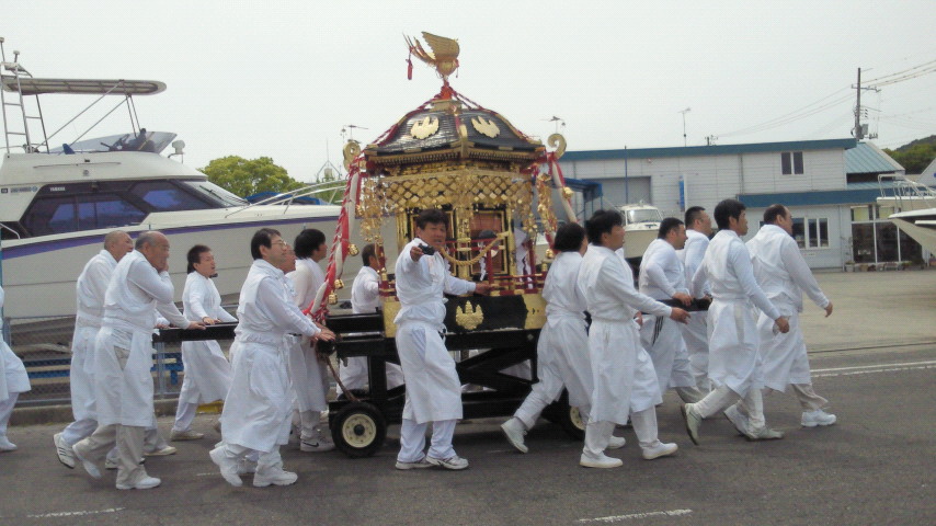 牛窓町には毎年春秋2回祭りがあり、秋はだんじり&お神輿が町内を練り歩き賑やかですが、春はお神輿だけの少々地味なお祭りとなっております。