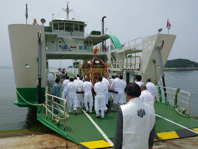 神輿をフェリーに載せ前島に…