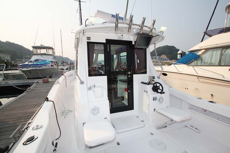 DGPS魚探、レーダー、オーパイ、国際VHF(AIS機能)、スラスター、エアコンなど装備満載。FSRとスパンカーで流し釣りで完璧!
