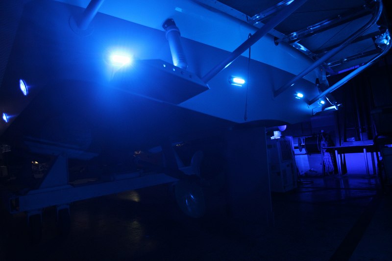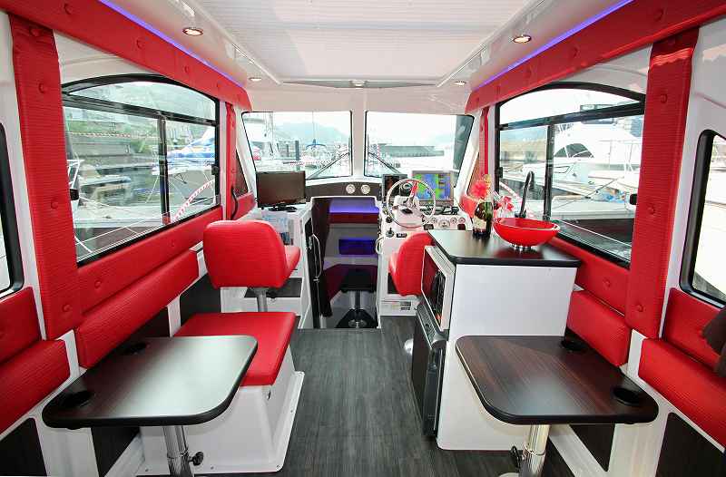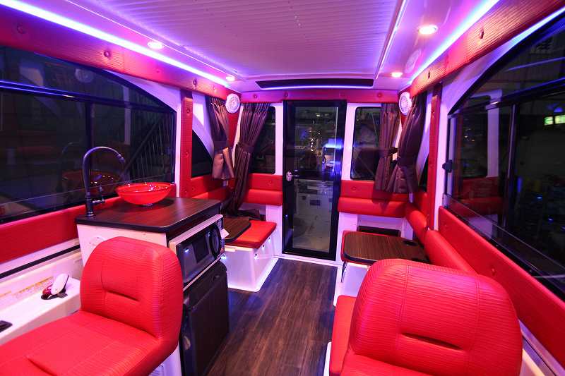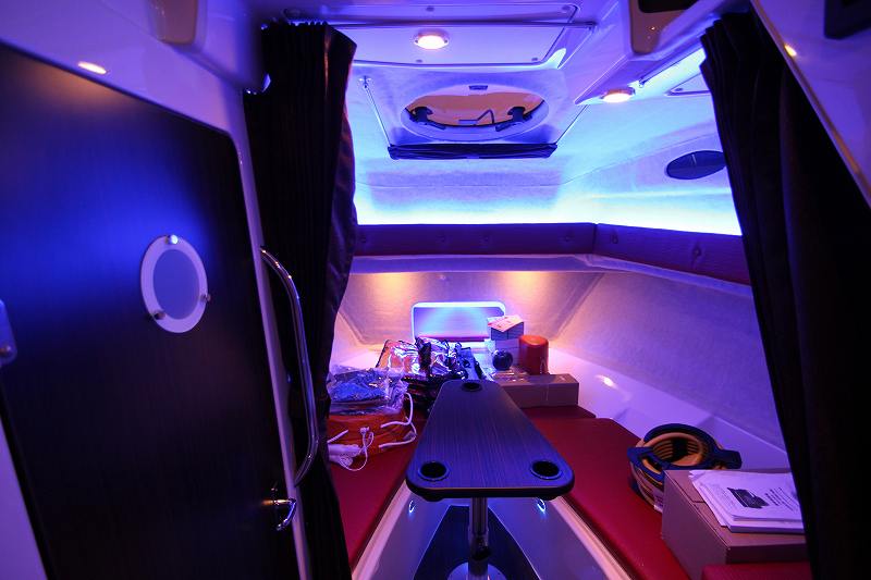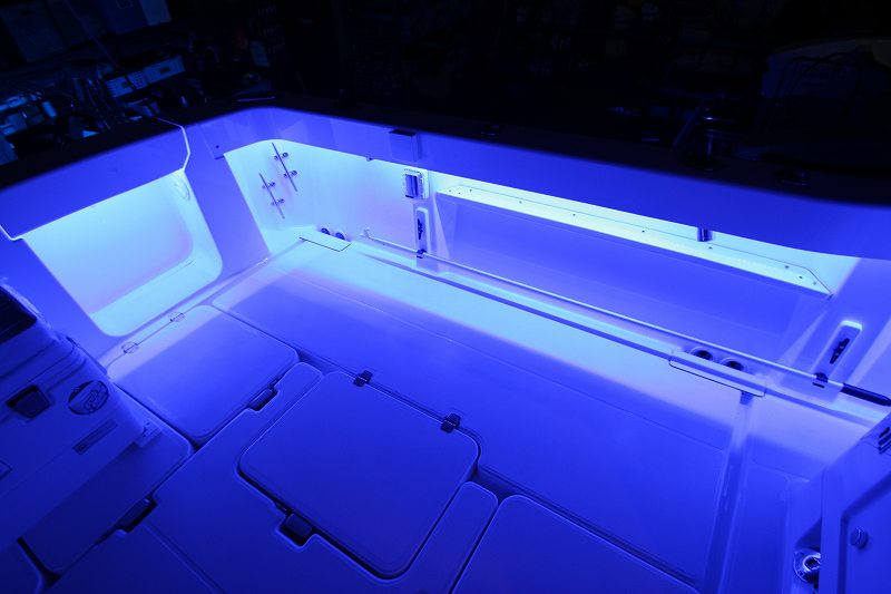 釣りだけが船遊びじゃございません。キャビンの壁、足元やデッキ、水中ライトにはブルーLEDを採用し、ナイトシーンも完璧です。